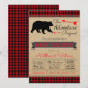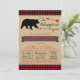 Convites de chá de bebê de lenhador com urso e flechas em papel Kraft e fundo xadrez de búfalo. Este convite de chá de bebê para uma aventura Boho é facilmente personalizado para o seu evento, basta adicionar seus detalhes.