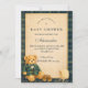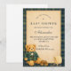 Um encantador design de chá de bebê preppy que apresenta um adorável ursinho vestido com um clássico casaco xadrez verde e gravata borboleta. Acima do urso, uma delicada corda de roupa exibe minúsculas roupas e sapatos de bebê, criando uma cena nostálgica de berçário de conto de fadas. O fundo azul-marinho profundo e a sutil borda xadrez adicionam um toque refinado e inspirado no vintage que se sente ao mesmo tempo elegante e divertido. Perfeito para uma celebração de chá de bebê estilosa com uma estética preppy clássica.