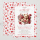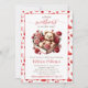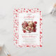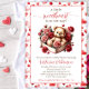 Convite de chá de bebê little sweetheart com ursinho em uma caixa em forma de coração e fundo vermelho. Basta adicionar os detalhes do seu evento a este adorável convite de chá de bebê.