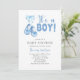 Celebre a chegada de um bebê com o nosso charmoso convite azul "É um Menino", perfeito para um chá de bebê. Compartilhe a alegria e a antecipação com este adorável design.