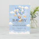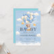 Convite para chá de bebê elefante azul e creme, totalmente editável com seu próprio nome, data, hora e local. Um doce design perfeito para a celebração de um menino