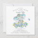 Elefante alegre e adorável com flores azuis bonito para um chá de fraldas. Sacudir nosso convite para ver uma coordenação de volta para um toque especial extra.