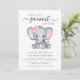 Um convite para chás virtual de uma menina fofa com "Um Doce Pequeno Amendoim Está a Caminho" escrito numa mistura de tipografia moderna de cinzas moles e um roteiro de na moda, e uma aquarela rosa pastel de um elefante bebê. Adicione o nome da mãe e os detalhes do chá virtual em uma simples tipografia de cinza.