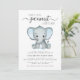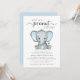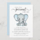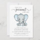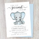 Um belo bebê chá virtual convidado com "Um Doce Pequeno Amendoim Está a Caminho" escrito numa mistura de tipografia moderna de cinza mole e um roteiro de na moda, e uma aquarela azul pastel de um elefante bebê. Personalize o nome da mãe e os detalhes do chá virtual em uma simples tipografia de cinza.
