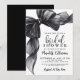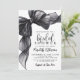 Este convite de chá de noiva com laço fofo apresenta um laço de aquarela preto ousado com fitas fluídas ao longo das bordas superiores e esquerdas para um visual moderno e sofisticado. A parte superior do convite lê "chá de noiva" em uma mistura elegante de fontes script e serif, tudo em preto, dando ao design uma sensação limpa, elegante e ligeiramente dramática. O resto dos detalhes permanece simples e polido, deixando o laço realmente se destacar.