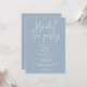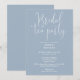 Este convite de chá de bebê elegante em azul empoeirado com letra de noiva pode ser personalizado com todas as informações do seu evento especial. Projetado por Thisisnotme©