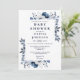 Convites Chá de Bebê Elegante em Azul Naval Floral QR Foto