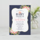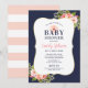 Convites Chá de Bebê Elegante Menina com Flores Navy e Dour