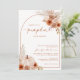 Convite elegante para chá de bebê em arco com flores de outono em aquarela e design de abóbora em creme.