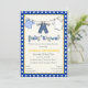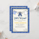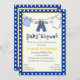 Chá de bebezinho de linha fechada, convite personalizado, com azul giro, cinzas, roupa branca de bebê na linha de roupas, o texto "chá de fraldas" em uma fonte divertida com corações e uma bolinhas branca e azul. Um design adorável e personalizável. Texto em cinza e amarelo. Personalize-o e altere a borda de cor azul. Alguns elementos de Alice Smith.