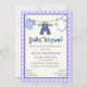 Chá de bebezinho de linha fechada, convite personalizado, com azul giro, cinzas, roupa branca de bebê na linha de roupas, o texto "chá de fraldas" em uma fonte divertida com corações e uma lavanda, roxa, borda branca de bolinhas. Um design adorável e personalizável. Texto em cinzas e roxo. Personalize-o e altere a lavanda de cores da borda. Alguns elementos de Alice Smith.