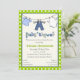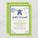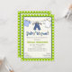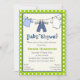Chá de bebezinho de linha fechada, convite personalizado, com azul giro, cinzas, roupa branca de bebê na linha de roupas, o texto "chá de fraldas" em uma fonte divertida com corações e uma bolinhas branca e verde. Um design adorável e personalizável. Texto em cinza e verde. Personalize-o e altere a borda verde-colorido. Alguns elementos de Alice Smith.