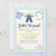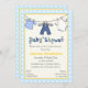 Chá de bebezinho de linha fechada, convite personalizado, com azul giro, cinzas, roupa branca de bebê na linha de roupas, o texto "chá de fraldas" em uma fonte divertida com corações e uma bolinhas branca e azul pálida. Um design adorável e personalizável. Texto em cinza e amarelo. Personalize-o e altere a borda azul pálido e cor azul. Alguns elementos de Alice Smith.