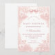 Um design de chá de bebê suave e elegante com delicadas ilustrações de toile rosa bege no estilo vintage. A moldura é adornada com cordeiros encantadores, flores, detalhes celestiais e um laço romântico, criando uma estética de berçário de livro de histórias atemporal. Perfeito para uma celebração clássica e feminina com um sentimento refinado de herança. A paleta de rosa suave e o estilo de gravação detalhado dão ao design uma atmosfera sofisticada, mas doce, que funciona lindamente para chás de bebê tradicionais ou no estilo cottagecore.