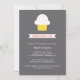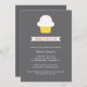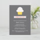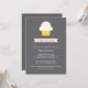 Chá de fraldas Whimsical convite com um cupcake fofo e um cartaz que diz "Sprinkled With Love". O convite apresenta texto branco sobre um fundo de cinza escuro. Carimbos e autocolantes também disponíveis: