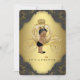 Convite de chá de bebê étnico preto e dourado para príncipe indiano hispânico africano americano com adorável bebê príncipe usando uma coroa dourada. Este convite ornamentado de chá de bebê para príncipe preto e dourado é facilmente personalizado para o seu evento adicionando detalhes do evento, estilo de fonte, tamanho e cor da fonte e texto.