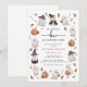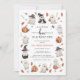 Prepare-se para um incrível chá de bebê de Halloween! Torne a chegada do seu Pequeno Fantasminha especial com nosso convite personalizado de Chá de Bebê Boo de Halloween. Celebre com um design único e personalizado que apresenta o charme de designs pintados à mão em aquarela de fantasmas assustadores, aranhas fofas, abóboras caprichosas e folhas de laranja queimada outonais, misturando sem esforço a alegria de receber um novo bebê com o espírito divertido do Halloween. Encomende agora e tenha o início perfeito para suas celebrações de Halloween!