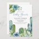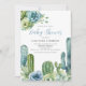 Convite de chá de bebê floral de cacto. Fácil de alterar o texto. Belo design de aquarela.