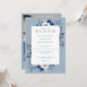 Este convite de chá de bebê floral azul bebê em flor pode ser personalizado com suas informações em tipografia moderna e uma foto especial no verso. Criado por Thisisnotme©