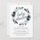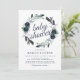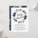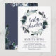 Convites de chá de bebê rústico boho bloom com um fundo branco chic que pode ser alterado para qualquer cor, um design de grinalda floral azul marinho aquarela fofo e um modelo de festa de bebê moderno que é fácil de personalizar.