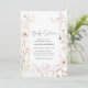 Convide seus entes queridos para um chá de bebê doce e elegante com este convite lindamente desenhado, apresentando delicadas flores silvestres em tons pastéis suaves. As flores delicadas em aquarela criam um visual sonhador e atemporal, perfeito para celebrar a chegada do seu pequeno. Este charmoso design combina a beleza da natureza com um toque de sofisticação, tornando-o ideal para um chá de bebê boho, rústico ou com tema de jardim.