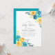 Convites Chá de Bebê Floral em Aquarela Turquesa e Amarelo