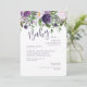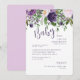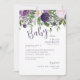 Convite para Chás de fraldas roxas/Lavandas. Flores roxas e cor-de-água. Elegante e simples.