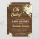 Convites Chá de Bebê Floral Rústico Neutro em Madeira