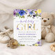 Este convite para chá de bebê de menina apresenta uma suave mistura de aquarela de florais roxos, amarelos e azuis com folhagens frescas, criando uma moldura suave e alegre para os detalhes da sua celebração. A caligrafia elegante combinada com uma tipografia serifada limpa dá ao design um visual sofisticado e feminino, mantendo o clima caloroso e alegre. Totalmente personalizável com os detalhes do seu evento, este design floral pastel combina perfeitamente com papelaria de chá de bebê correspondente para um conjunto de celebração coeso e encantador.