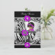 Convites Chá de Bebê Fofa Menina Bebê Zebra Roxo Rosa Preto