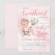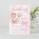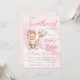 Convite de chá de bebê little sweetheart com adorável bebê menina e balão em um lindo fundo de nuvem rosa. Este convite de chá de bebê para menina é facilmente personalizado com os detalhes do seu evento.
