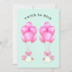 Convites criativos para chá de bebê de gêmeas meninas com arranjos exclusivos de balões cor-de-rosa e adoráveis gêmeas recém-nascidas usando capacetes.