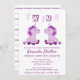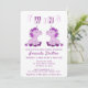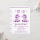 Convite de Chá de Bebê Gêmeas Meninas Unicórnio Fofo Rosa. O design tem dois pequenos unicórnios rosa e roxo para gêmeas meninas.