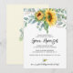 Convite de chá de bebê com cartão de girassol aquarela rústica eucalipto e folhagens.