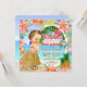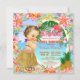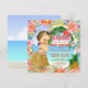 Convite de chá de bebê luau com adorável bebê menina vestindo saia de hula de grama em um fundo colorido de praia tropical. Você pode personalizar facilmente este convite de chá de bebê havaiano luau tropical floral colorido para o seu evento, simplesmente adicionando seus detalhes no estilo de fonte e cor de sua escolha. Alguns gráficos ©delightfuldoodles.