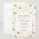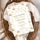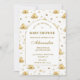 Um design quente e encantador com delicadas abelhas, colmeias douradas e vegetação botânica suave dispostos em um padrão leve e arejado. A paleta neutra suave combinada com o layout arqueado elegante cria uma estética doce e convidativa que se sente ao mesmo tempo lúdica e refinada, perfeita para um chá de bebê inspirado na natureza com um toque suave de livro de histórias.