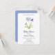 Com um design elegante e bordas arredondadas, este cartão postal de convite de aquarela traz um toque extra de suavidade e charme para o seu evento. Com uma delicada ave azul cuidando de seu filhote ao lado de um lírio africano em flor, este design inspirado na natureza parece quente e acolhedor desde o primeiro olhar. Os cantos arredondados acentuam o visual delicado, tornando-o uma escolha linda para chás de bebê, celebrações e encontros especiais onde uma apresentação suave e de coração é importante.