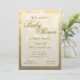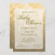 Um design elegante e eterno para um convite para chá de fraldas em cores claras em forma de pranchas de ouro com letras douradas. Nota: Este é um impressão de arte gráfica e não contém nenhuma falha.