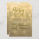 Um design macio, elegante e eterno para um convite para chá de fraldas com cores claras nos blocos do ouro com letras douradas. Nota: Este é um impressão de arte gráfica e não contém nenhuma falha.