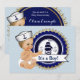 Convite de chá de bebê marinheiro com fundo azul bebê e adorável bebê marinheiro vestindo um quepe de marinheiro charmoso convite de chá de bebê temático marítimo. Este convite de chá de bebê temático marítimo é facilmente personalizado para o seu evento. Adicione seus detalhes na frente e/ou verso simplesmente adicionando os detalhes do evento, estilo de fonte, tamanho e cor da fonte e texto. Você também pode remover o fundo para adicionar sua própria cor.