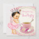 Convite de chá de bebê para menina com tutu rosa adorável princesa bebê menina com colar de pérolas e linda coroa prateada e rosa. Este convite de chá de bebê com tutu rosa e xícara de chá é facilmente personalizado para o seu evento adicionando detalhes do evento, estilo de fonte, tamanho e cor da fonte e texto.