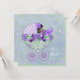 Convite de chá de bebê afro-americano roxo lavanda e verde claro. Este convite de chá de bebê menina afro-americana roxo e verde tem um carrinho de bebê floral e com laço com uma doce menina dentro. Você pode personalizar facilmente este convite de chá de bebê lavanda e verde adicionando os detalhes do seu evento, estilo de fonte, tamanho e cor da fonte e texto.