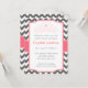 Celebre o nascimento do seu orgulho, alegria e jóia - sua bebê princesa com este convite de chá de bebê menina com tiara rosa e fundo com padrão de chevron cinza escuro e branco. Elegante, sofisticado com uma dose doce de rosa! Personalize facilmente com os detalhes da sua festa.
