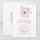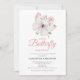 Convite de Chá de Bebê A Borboleta Está a Caminho. Delicado design de borboleta rosa e floral em aquarela. Perfeito para menina. Personalize o convite com suas próprias informações.