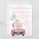 Convites Chá de Bebê Menina Com Animais Lindos no Carro