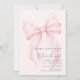 Encantador, feminino e elegantemente sofisticado, este convite de chá de bebê apresenta um gracioso laço cor-de-rosa em aquarela que traz um toque suave e comemorativo ao design. A arte do laço fluído cria um ponto focal doce, enquanto o layout limpo e moderno mantém o convite elegante e fácil de ler.