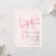 Doce, suave e cheio de charme, este convite de chá de bebê apresenta um lindo laço rosa em aquarela que define o tom para uma celebração alegre. O design de fita fluida adiciona um toque de elegância, mantendo a aparência geral leve, quente e acolhedora.