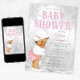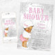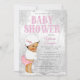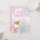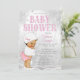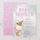 Convite de chá de bebê menina inverno com adorável bebê étnica usando um lindo traje rosa de inverno em um belo fundo de floco de neve de inverno. Este convite de chá de bebê de inverno é facilmente personalizado para o seu evento, basta adicionar os detalhes do evento.