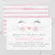 Convite de chá de bebê de gatinho com adorável rosto de gatinho feliz em aquarela em um fundo de listras rosa e branco. Estes convites de chá de bebê de gato são facilmente personalizados para o seu evento, basta adicionar seus detalhes.
