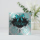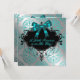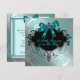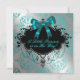 Convite de chá de bebê menina princesa azul turquesa com damasco azul turquesa e laço preto. Adicione seus detalhes na frente e/ou atrás adicionando os detalhes do evento, estilo de fonte, tamanho e cor da fonte e texto. Por favor, note que todos os desenhos de convite que você encontrará no Zazzle são gráficos impressos em papel liso sem joias, laços, relevos, rebaixos ou peças ou partes adicionadas.